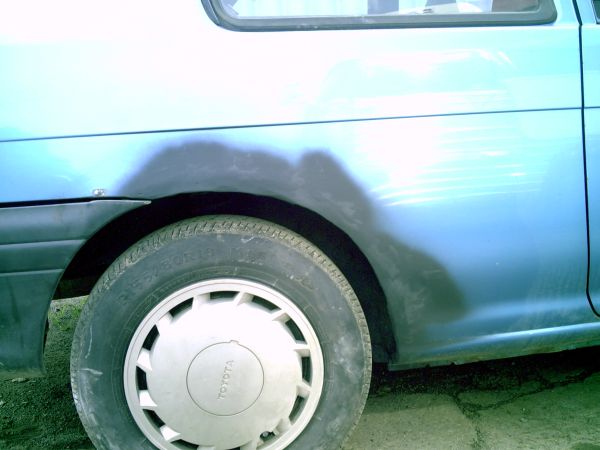 I have done body work before and have worked with the good ol’ Bondo, but with the other cars I’ve owned I haven’t much cared how it looked just that it would pass inspection. This car on the other hand I do want to look half decent to I took my time in applying the body filler and took a lot of time sanding and trying to make it unnoticeable. This is difficult work. I am happy with the result although I’m definitely not ready to jump into the auto body business.